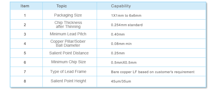 ●Now, Anst can provide full series of packaging technologies including copper pillar and solder ball type of Flip Chip on lead frame (interconnection of chip and lead frame)